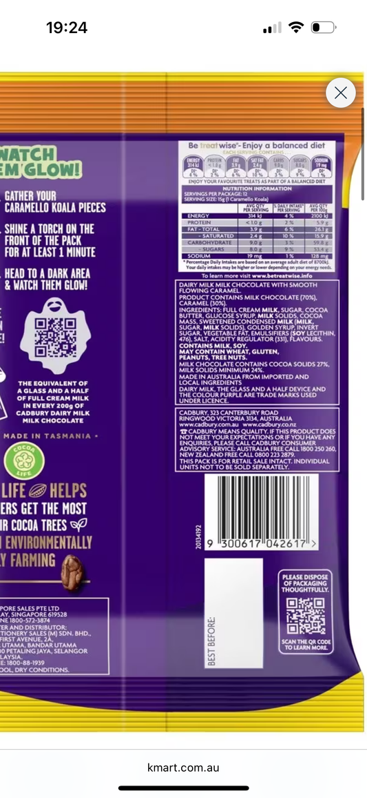 Cadbury Caramel Koala Glow in the Dark 15g Australia