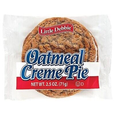 This is the Little Debbie snack that started it all Oatmeal Creme Pies have been satisfying families since 1960 as the very first snack baked under the Little Debbie brand name. Whole grain oats, molasses, and irresistible creme filling combine to create this classic treat. Available in single serve, family packs, and big packs, thereâs a size for everyone Whether you like your OCP with a scoop of ice cream, a tall glass of milk, a warm mug of hot chocolate, or fresh from the freezer, Oatmeal Creme Pies are available year round.